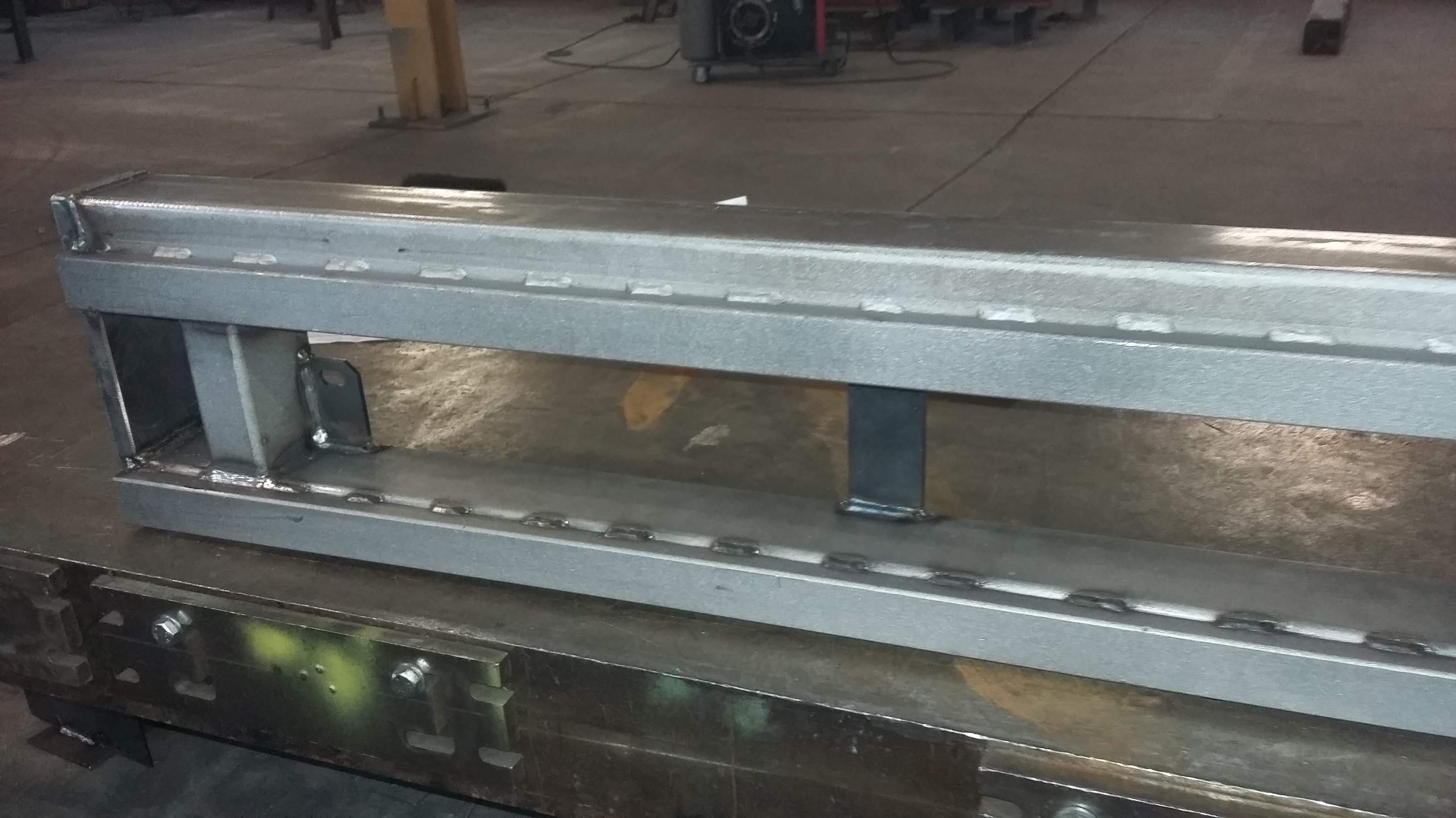 Üzemi acélszerkezetgyártás, bonyolult szögekkel, az EN1090-2 EXC3 szerinti előírosknak megfelelően.